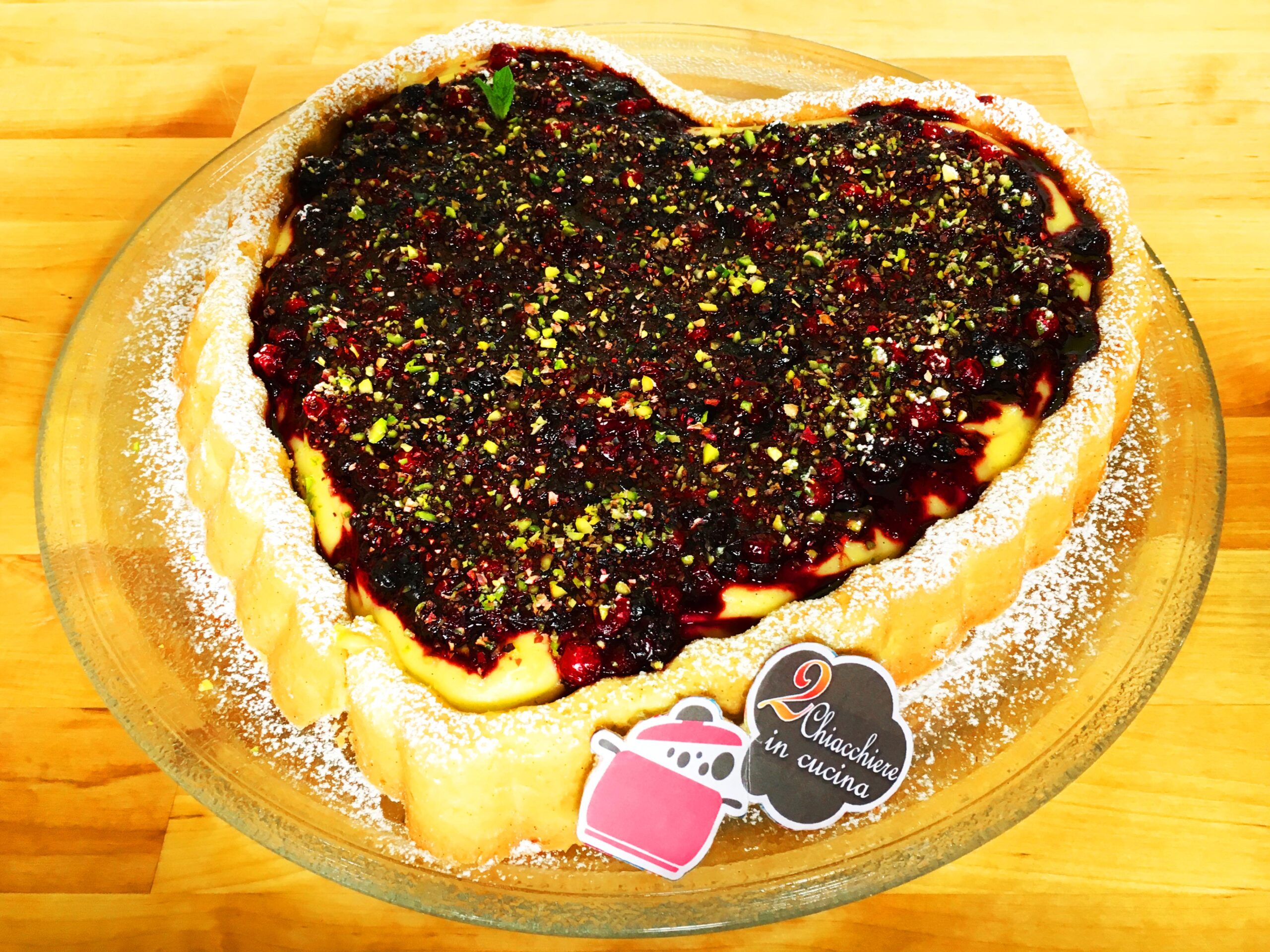 Pennellate il fondo della crostata con la confettura di albicocche, versate la crema pasticcera e decorate con i lamponi e la granella di pistacchi.