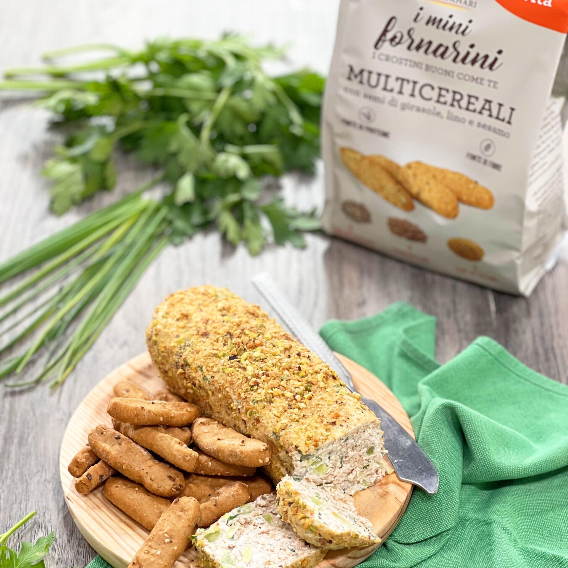 - Arrotolate la crema di formaggio nel mix e servire con altri grissini.