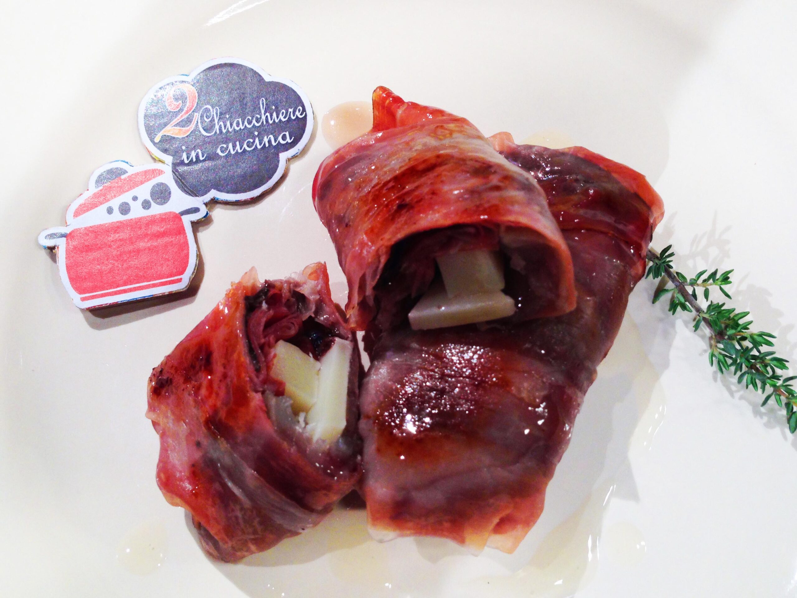 Su un tagliere, disponete le fettine di speck, adagiate il radicchio, un pezzettino di Asiago e chiudete a pacchettino.