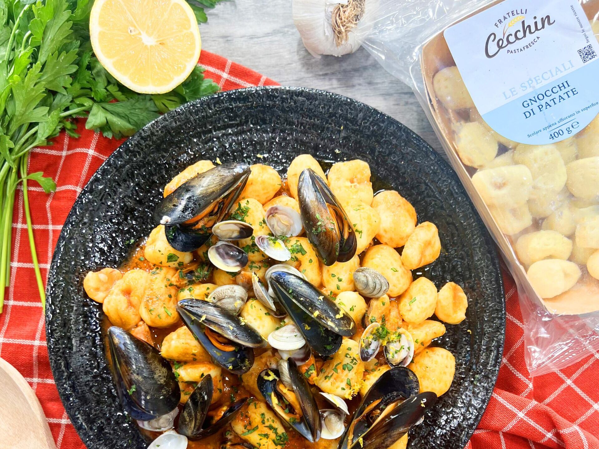 - Ora fate bollire gli gnocchi in acqua bollente salata, scolate e spadellate con il sugo ed aggiungete la salsa di pomodoro, mantecate per bene e servite con del prezzemolo tritato e della scorza di limone.