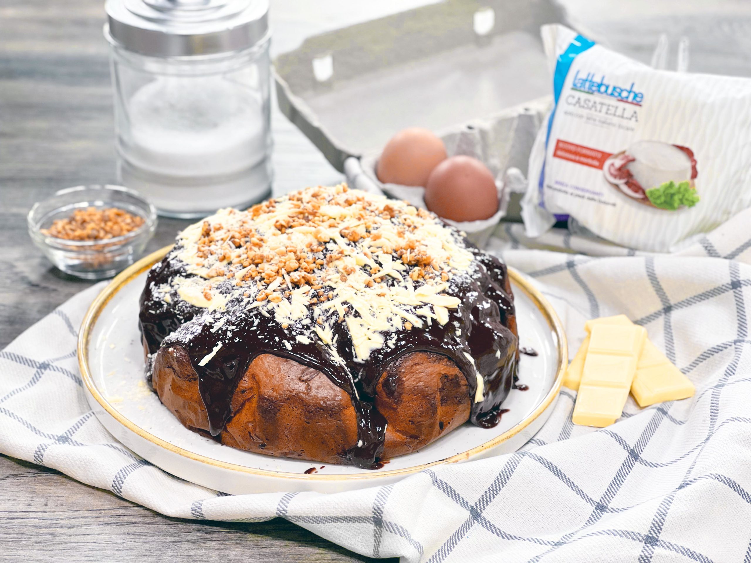 - Inizia sciogliendo il cioccolato fondente a bagno maria, poi in una ciotola, sbatti la Casatella con lo zucchero fino a ottenere una crema liscia.